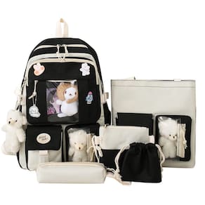 - ??O pacote inclui?Conjunto de 5 peças: 1 mochila, 1 bolsa de ombro, 1 caixa de lápis, 1 sacola, 1 bolsa pequena com cordão. Vem com 4 pingentes de pelúcia e um conjunto de pinos (cores e estilos aleatórios). Você também pode fazer você mesmo o lindo conjunto de mochilas com outros acessórios kawaii que você tem.