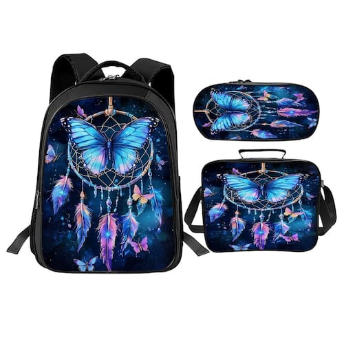 - O conjunto de mochila inclui: 1 mochila + 1 lancheira + 1 estojo. O tamanho da mochila escolar é de 40,6 cm (C) x 30 cm (A) x 15,2 cm (L). Lancheira: 21 cm (C) x 27 cm (L) x 12 cm (A); Estojo: 11 cm (C) x 22 cm (L) x 4,6 cm (A)