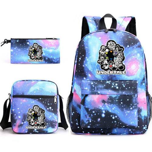 Conjunto de mochila Undertales, 3 peças, mochila escolar com bolsa de lápis e bolsa mensageiro
