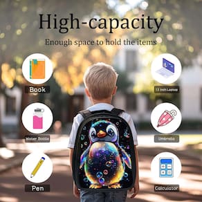 - Grande capacidade, esta mochila também é muito funcional! O design do compartimento dentro da mochila permite que as crianças armazenem livros de forma mais ordenada. A abertura e o fechamento com zíper duplo são muito convenientes, e os dois bolsos de malha laterais podem conter garrafas de água e guarda-chuvas. A lancheira pode acomodar a maioria das lancheiras, garantindo que as crianças possam trazer refeições deliciosas. O estojo de lápis também oferece amplo espaço para pincéis infantis