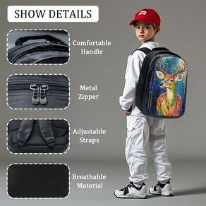 - Material O tecido leve de poliéster não só torna a mochila leve, mas também muito durável. O processo de costura múltipla e o zíper suave garantem a durabilidade da mochila, que é muito adequada para o uso diário das crianças. O design respirável e confortável e as alças de ombro ajustáveis podem efetivamente reduzir a carga nas costas. O design da alça superior também é muito conveniente, facilitando o levantamento da mochila