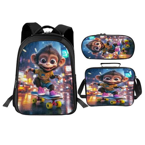 Conjunto de mochilas escolares Trimety Monkey com lancheira e estojo de lápis