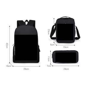 Tamanho: Mochila 29x16x42cm Messenger 19x6x23cm Bolsa de lápis 24x7x11cm Material: nylon Peso: 0,65 kg Embalagem: 1 x mochila 1 x bolsa de lápis 1 x bolsa Messenger ? A mochila Cartoon é ergonômica, as alças são ajustáveis e removíveis. Você pode ajustar seu comprimento de acordo com sua altura e corpo. Alivie a pressão no ombro e na almofada traseira com material altamente permeável. ? A mochila escolar de anime é perfeita para adolescentes. Multifuncional para escolas, universidades, esportes ao ar livre, camping, caminhada, viagens, piquenique, etc. ? Espaçosa o suficiente: a mochila é grande o suficiente para guardar a maioria das necessidades escolares e diárias, como livros didáticos, fichários, cadernos, calculadora, canetas e lápis, lancheira, casaco ou camisas pequenas, telefone celular, cartões, carregadores portáteis, alguns caixas, tocador de MP3 e um laptop, no máximo polegada ? Experiência de uso perfeita: alças de design exclusivo aliviam a pressão no ombro e a almofada, com material de alta permeabilidade, nunca cobrirá o suor quando você a carrega muito tempo. ? Nosso serviço: Estamos comprometidos em criar o melhor serviço de produto para cada cliente. Se este produto não atender às suas expectativas, sinta-se à vontade para entrar em contato conosco, faremos o melhor para lidar com ele até que você fique satisfeito.