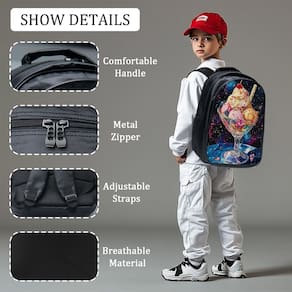 - Material: o tecido de poliéster leve não apenas torna a mochila leve, mas também muito durável. O processo de costura múltipla e o zíper suave garantem a durabilidade da mochila, o que é muito adequado para o uso diário das crianças. O design respirável e confortável e as alças ajustáveis podem reduzir efetivamente a carga nas costas. O design da alça superior também é muito conveniente, facilitando o levantamento da mochila