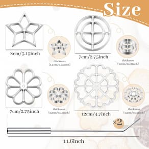 Características: Resistência e elegância: Feito de liga de alumínio, nosso ferro de biscoito roseta é projetado para suportar o uso repetitivo e também há alças de metal para uso seguro. Apesar de serem resistentes, o design desses moldes confere elegância a essas ferramentas, oferecendo não apenas função, mas também adicionando estética à sua cozinha. A escolha de presente ideal: nosso conjunto de moldes de roseta e alça de cozimento com seus moldes de design versátil é o presente ideal para seus entes queridos que amam assar. É adequado para assar à base de massa, serve como um presente atencioso. Especificações: Material: liga de alumínio, metal Cor principal: prata Tamanho: Cabo de cozimento: cerca de 9,84 polegadas/25 cm de comprimento Molde de cozimento pequeno em forma de flor: cerca de 2,76 polegadas/7 cm Molde de cozimento em forma de círculo: cerca de 2,76 polegadas/7 cm Molde de cozimento em forma de estrela de cinco pontas: cerca de 3,15 polegadas/8 cm Molde de cozimento em forma de flor grande: cerca de 4,72 30 cm. O pacote inclui: 2 x alças de cozimento 4 x moldes de cozimento (em 4 designs) Observações: Medição manual, permita pequenos erros no tamanho. - Experimente versatilidade no cozimento: o pacote inclui 2 alças de cozimento de cerca de 25 cm e 4 formas de bunuelos; se adora biscoitos em forma de flor ou o design clássico de círculo, pode experimentar vários formatos de molde; o conjunto também contém um molde de estrela distinto de cinco pontas e um molde de flor maior, adequado para assar à base de massa - Conforto e segurança garantidos: com alças de cozimento de cerca de 25 cm, pode usar confortavelmente os moldes de biscoito com segurança; as longas alças protetoras evitam o calor, garantindo que sua mão esteja segura de queimar enquanto você desfruta de seus projetos de cozimento DIY - Ferramentas de cozimento confiáveis: nosso conjunto de ferro roseta com alça é feito de liga de alumínio resistente, conhecida por sua longevidade; eles são cuidadosamente projetados, oferecem uma variedade de formas para necessidades versáteis de cozimento e são fáceis de usar; ideais para guloseimas caseiras e tradicionais, essas ferramentas são práticas para muitos padeiros apaixonados - Seu parceiro de cozimento DIY: seja você um iniciante ou um entusiasta de cozimento, nosso molde de bunuelos com alça garante que você aproveite o processo; os designs fáceis de mudar permitem que você experimente várias formas; Liberte sua criatividade e faça guloseimas tradicionais ou contemporâneas facilmente - Facilmente gerenciável: com nossos moldes de roseta para assar, é muito fácil criar belos waffles, bolos, chocolate, biscoitos e doces; esses moldes são laváveis à mão, garantindo que possam limpá-los facilmente após seus esforços de cozimento e manter sua longevidade