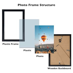 - MATERIAL SEGURO: A moldura fotográfica é feita de plástico, leve e fácil de usar. Usar acrílico de plástico HD mais seguro em vez de vidro pode evitar que se quebre por acidente. Esta é uma opção segura para quem tem filhos, pois você não precisa se preocupar com ferimentos devido à quebra acidental do vidro. Remova a película protetora de dupla face do acrílico plástico antes de usar para permitir uma exibição mais nítida das fotos.