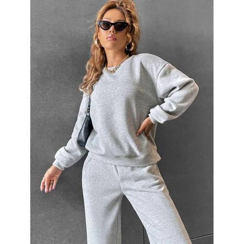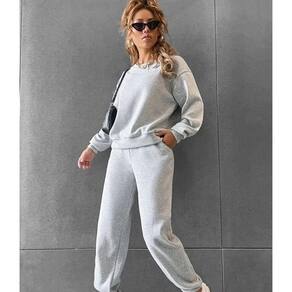 Conjunto de Moletom Abrigo Feminino Flanelado Algodão Liso - Cinza - GG