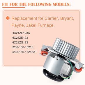 Motor indutor Hiorucet HC21ZE123A para forno Jakel Carrier Payne Bryant. Especificações: 115 V. 1,7 FLA. 60 Hz. 3000 RPM ?O conjunto do motor indutor do forno substitui este número de modelo: HC21ZE123A, HC21ZE123, HC21ZS123, Jakel J238-150-15215, J238-150-15215AT. - ?Este soprador de indutor Jakel J238-150-15215 foi projetado para substituir o forno Carrier, Bryant, Payne, Jakel. ?O conjunto do motor indutor do forno substitui este número de modelo: HC21ZE123A, HC21ZE123, HC21ZS123, Jakel J238-150-15215, J238-150-15215AT. - ?Especificações: Motor indutor HC21ZE123A Volts: 115V, 1,7FLA, 60Hz, 3000RPM. - ? Motor atualizado - Qualidade em que você pode confiar! Todos os produtos Hiorucet são feitos com materiais premium, e cada motor examina antes de sair da fábrica e testes rigorosos, para garantir uma boa estrutura, excelente sucção, combinação perfeita e operação suave, garantindo que você receba uma boa substituição do motor. ? Operação silenciosa: atualizou este motor indutor hc21ze123a da operadora, minimizando os níveis de ruído. - ? Função do motor indutor: este soprador de indutor jakel j238-150-15215 é projetado para expelir o gás de exaustão do forno. Fornos ineficientes mais antigos permitiam que o gás de combustão escapasse da unidade praticamente sem resistência. Os trocadores de calor de forno de alta eficiência mais recentes são tão restritivos que os gases de combustão não podem sair do forno por correntes de ar natural. Portanto, o indutor é necessário para puxar os gases de combustão através do trocador de calor. O motor indutor geralmente é a primeira coisa que liga quando seu forno exige calor. - ? Incluído na compra: Este é um conjunto de motor indutor de forno. Inclui uma roda sopradora, motor indutor HC21ZE123A, suporte de montagem, parafusos e junta. Este soprador substitui os números de peça do motor indutor de rascunho hc21zs123 e vem com uma devolução e troca de 365 dias.