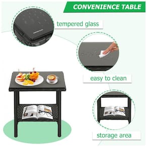 Este sofisticado conjunto de móveis de exterior é o complemento perfeito para o seu espaço ao ar livre. Feito à mão com fibra de vime extra grande, garante um assento mais resistente e substancial do que as peças de vime comuns. O conjunto inclui 2 cadeiras de vime com almofadas espessas e uma mesa de café com tampo de vidro. As almofadas são preenchidas com esponja de alta densidade para máximo conforto. Fácil de montar com todas as ferramentas necessárias incluídas. As capas das almofadas são removíveis para uma limpeza fácil. Feito com estrutura de aço revestido a pó e vime de rattan PE resistente às intempéries, garantindo durabilidade e leveza. Ideal para decorar quintais, piscinas, varandas e mais.