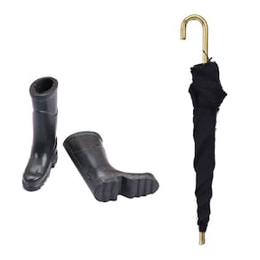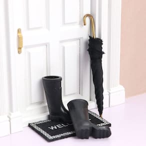 Botas de chuva: Tamanho: Altura de cerca de 3,5 cm Material: borracha Peso: 7,5 g Guarda-chuva: Tamanho: Comprimento total de cerca de 8,5 cm Material: tecido metálico Peso: 4G Conjunto realista de botas de chuva e guarda-chuvas em miniatura, feito para casas de bonecas em escala 1/12, ideal para enriquecer cenas de brinquedos de teatro ao ar livre ou com temas de viagens. As botas são feitas de borracha durável com detalhes finos. O guarda-chuva possui uma cobertura de tecido com alça de metal para uma aparência autêntica. Acessórios de casa de bonecas perfeitos para decorar halls de entrada, armários ou configurações para dias chuvosos em suas vitrines de minicasas. Brinquedo não infantil, evite o risco de asfixia ou ferimentos em crianças pequenas; este item é apenas um modelo lúdico, não para uso humano real. Recomendado para casas de bonecas e bonecas em escala 1/12; aprimora as coleções de brinquedos de fingir com um toque elegante e realista.
