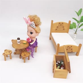Material: Madeira Dimensões: Cama: 13,5 x 8,8 x 9,5 cm Caixa de brinquedos: 7,2 x 4 x 3,8 cm Mesa: diâmetro 5,6 cm, altura 4,4 cm Banco: assento 2,8 cm, altura 2,3 cm Peso: 260 g Conjunto completo de móveis de quarto de bebê: este conjunto completo de 5 peças inclui cama, caixa de brinquedos, mesa e bancos, todos com adoráveis desenhos de ursos, perfeito para o bebê de sua casa de bonecas em miniatura sala. Artesanato em madeira de alta qualidade: feito de madeira durável, este conjunto apresenta detalhes intrincados e é ideal para casas de bonecas em escala 1:12, adicionando charme e funcionalidade à sua mini casa. Perfeito para fingir brincar: este conjunto de móveis incentiva brincadeiras criativas, permitindo que as crianças imaginem e decorem seu próprio quarto de bebê, aprimorando as habilidades de contar histórias e interpretar papéis. Serve para casas de bonecas em escala 1:12: projetado especificamente para a escala 1:12, este conjunto de móveis se encaixa perfeitamente em casas em miniatura, cozinhas ou salas de jogos para bonecas. Nota de segurança importante: Este é um modelo de brinquedo para bonecas e não se destina ao uso humano. Por favor, mantenha-se afastado de crianças pequenas para evitar engolir ou ferir acidentalmente.