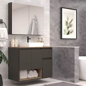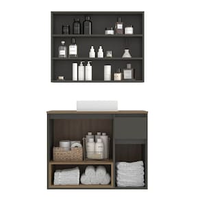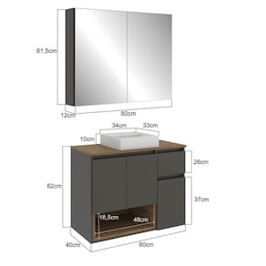 O conjunto de balcão gabinete e espelheira CJ9240 é perfeito para fazer parte do seu banheiro. Possui design moderno e sofisticado e vai deixar sua casa elegante e confortável! A espelheira bem espaçosa possui 2 portas com espelho e 2 prateleiras internas práticas para armazenar produtos de higiene pessoal, medicamentos e acessórios de banheiro e o gabinete possui 3 portas com bastante espaço interno , 1 gaveta e 1 nicho. Acompanha cuba de sobrepôr branca. Acabamento da Cuba: Acetinado Acabamento da Gaveta: Finish Foil Acabamento da Porta: Finish Foil Acabamento da Prateleira: Finish Foil Acompanha Cuba: Sim Acompanha Gaveteiro: Não Acompanha Manual de Instalação: Sim Acompanha Parafusos Para Fixação Na Parede: Sim Acompanha Tampo: Sim Acompanha Válvula: Não Altura do Espelho: 61 cm Ambiente Principal: Banheiro codigo_ean: 7900288137876 Complexidade da Montagem: Média: pode ser montado por mais de uma pessoa e/ou necessite de maior conhecimento para montagem Comprimento da Prateleira: 76,9 cm Cor: Mel/Grafite Cor da Cuba: Branca Cor da Gaveta: Preto Cor da Porta: Preto Cor do Produto: Mel/Grafite Cor Flex: Não Cor Interna: Mel/Grafite Escala de Brilho: Fosco Escala de Brilho da Gaveta: Fosco Escala de Brilho da Porta: Fosco Escala de Brilho da Prateleira: Fosco Espessura do Espelho: 3 mm Formato da Cuba: Retangular Formato do Espelho: Retangular Formato Espelheira: Retangular Furação para Cuba e Torneira: Não Gaveta com Chave: Não Itens Inclusos: 1 Conjunto de Móveis para Banheiro, Kit para Instalação e Manual de Montagem Largura do Espelho: 39 cm Linha ou Coleção: Banheiro Manual de Montagem e Instalação: https://cdn2.madeiramadeira.com.br/atributo/faema/2897992-5225-17462066530958.pdf Marca: FAEMA Material da Cuba: Mármore Sintético Material da Gaveta: MDP Material da Porta: MDP Material da Prateleira: MDP Material do Tampo: MDP Material Principal: MDP Medida da Cuba (C x L x P): 34x33x33 Medida da Espelheira (A x L x P): 61,5x80x12 Medida do Gabinete (A x L x P): 62x80x40 Montagem Flex: Não Necessita Montagem: Sim Origem do Produto: Nacional Peso: 41,5 kg Peso Máximo por Gaveta: 5 kg Peso Máximo por Prateleira: 5 kg Possui Espelheira: Sim Possui Gabinete: Sim Possui Gavetas: 01 Possui iluminação: Não Possui Nichos: Sim Possui Pés: Suspenso Possui Porta de Vidro: Não Possui Portas: 05 Possui Recorte No Tampo Para Cuba: Não Possui Recorte No Tampo Para Misturador: Não Possui Rodízio: Não Possui Sifão: Não Possui Tampo: Sim Possui Tampo de Vidro: Não Produto Montado: Não Quantidade de Espelhos: 02 Espelhos com Tamanhos Iguais Recomendações de Uso, Manutenção e Limpeza: Para a limpeza do móvel utilizar pano levemente umedecido com água Sistema de Montagem: Parafusos,cavilhas e minifix Suporta Até (kg): 55 kg Suporte para Toalheiro: Não Tamanho do Espelho (A x L): 61 x 39 Tamanho do Gabinete: Médio: de 60cm a 80cm de largura Tamanho do Produto: 123,5x80x40 Tipo de Corrediça da Gaveta: Metálica Simples Tipo de Cuba: Sobrepor Tipo de Dobradiça/Corrediça da Porta: Metálica Tipo de Fixação do Espelho: Silicone Tipo de Gabinete: Gabinete Suspenso Tipo de Gaveta: Externa Tipo de Porta: Bater Tipo de Puxador da Gaveta: Não Contém Tipo de Puxador da Porta: Não Contém