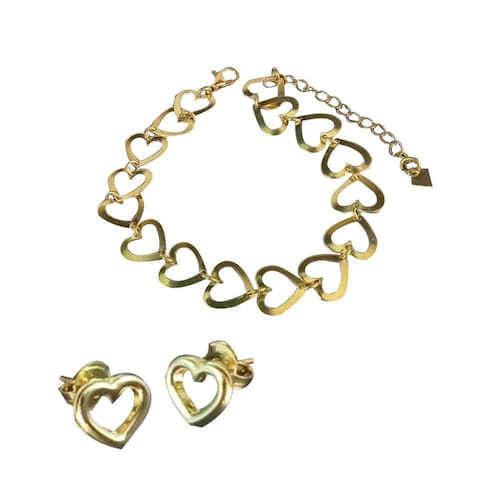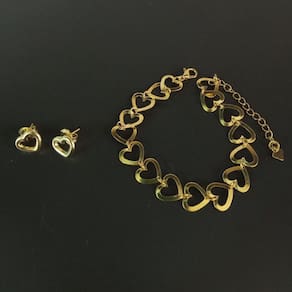 Conjunto de Ouro Pulseira e Brinco Corações Crescentes 16cm Dourado -