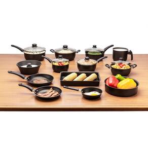 Conjunto de panelas 13 peças antiadrente preto tampa de vidro - Dona chefaAs panelas são em alumínio com revestimento antiaderente que, além de facilitar a preparação de alimentos com maior rapidez e facilidade, torna a hora de lavar a louça uma tarefa mais simples. Cabos, alças e pegador da tampa anatômicos em baquelite antitérmico. Proporciona maior segurança e durabilidade, com elegância e modernidade para a sua cozinha Ideal para cozinhar no dia a dia, proporciona qualidade e conforto.Itens Inclusos:01 - Panela de 14cm de diâmetro01 - Panela de 16cm de diâmetro01 - Panela de 18cm de diâmetro01 - Panela de 20cm de diâmetro01 - Caçarola de 16 cm de diâmetro01 - Caçarola de 20 cm de diâmetro01 - Fervedor de 14 cm de diâmetro01 - Frigideira de 16 cm de diâmetro01 - Frigideira de 18 cm de diâmetro01 - Frigideira de 20 cm de diâmetro01 - Forma de Bolo 25 cm de diâmetro01 - Forma de Bolo 30 cm de diâmetro01 - Assadeira 30x20x5,5 cmFicha técnica- Peças incluídas: Panela- Com revestimento antiaderente: Sim- Quantidade de peças: 13- Materiais: Teflon- Material da alça: Plástico- É adequado para lava-louças: Sim- Cor: Preto
