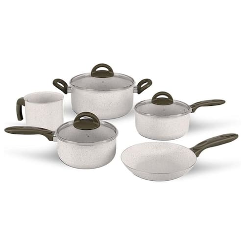 Conjunto De Panelas 5 PCS Ceramic Life Suprema Vanilla Seja para o dia a dia ou para preparar pratos especiais, poder cozinhar com panelas de alta qualidade e sofisticação traz inspiração para suas receitas. É isso que oferece o Jogo de Panelas 5 Peças Linha Ceramic Life Suprema/Brinox, que leva para sua casa tecnologia e praticidade. As panelas Ceramic Life Suprema contam com revestimento antiaderente Mineral Resist em seis camadas que cozinha com menos óleo e torna a limpeza mais fácil. Os cabos, alças e poméis são produzidos em baquelite com 50% de resíduos recuperados. As tampas em vidro temperado têm saída de vapor. O Jogo de Panelas Suprema na cor Vanilla é composto por: Caçarola com Tampa 20 x 10 cm - 2,65 L; Panela com Tampa 18 x 9 cm - 1,9 L; Panela com Tampa 16 x 8 cm - 1,3 L; Frigideira 20 x 4 cm - 800 ml; e Fervedor 14 x 12,5 cm - 1,8 L. A linha Ceramic Life Suprema é fabricada no Brasil com energia de fontes 100% renováveis. Os produtos Brinox agregam tecnologia, sofisticação e sustentabilidade. Ean: 7900161006374