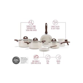 Com cabos soft-touch se tornam mais seguras e confortáveis, pois não acumulam calor e tem um toque macio. Características -Material: Alumínio com revestimento interno antiaderente cerâmico -