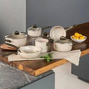 Conjunto De Panelas 7 PCS Ceramic Life Suprema Vanilla Seja para o dia a dia ou para preparar pratos especiais, poder cozinhar com panelas de alta qualidade e sofisticação traz inspiração para suas receitas. É isso que oferece o Jogo de Panelas 7 Peças Linha Ceramic Life Suprema/Brinox, que leva para sua casa tecnologia e praticidade. As panelas Ceramic Life Suprema contam com revestimento antiaderente Mineral Resist em seis camadas que cozinha com menos óleo e torna a limpeza mais prática. Os cabos, alças e poméis são produzidos em baquelite com 50% de resíduos recuperados. As tampas em vidro temperado têm saída de vapor. O Jogo de Panelas Suprema na cor Vanilla é composto por: Caçarola com Tampa 24 x 11,5 cm - 4,5 L; Caçarola com Tampa 20 x 10 cm - 2,65 L; Panela com Tampa 18 x 9 cm - 1,9 L; Panela com Tampa 16 x 8 cm - 1,3 L; Frigideira 20 x 4 cm - 800 ml; Wok 24 cm - 2,3 L; Fervedor 14 x 12,5 cm - 1,8 L. Os produtos Brinox agregam tecnologia, sofisticação e sustentabilidade. Código: 7900161006350 Marca: Não Informado Ean: 7900161006305