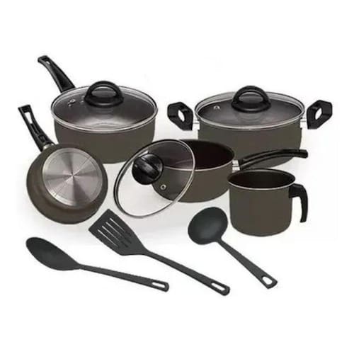DescriçãoJogo de panelas 08 peças preto antiaderentes elegan tampa de vidroComposição:Panela 16Panela 18Caçarola 18Canecão 14Frigideira 18 s/ tampa3 utensílios diversosMarca: marpalMaterial: alumínio; teflon antiaderenteMaterial das tampas: alumínioMaterial dos utensílios: nylonMaterial alças e poméis: baqueliteEspessura: 1,0 mmCor: pretoImagens meramente ilustrativas. As tonalidades podem variar de acordo com seu monitor ou até mesmo com a percepção dos seus olhosO fabricante pode alterar detalhes de cor nos produtos sem aviso prévio