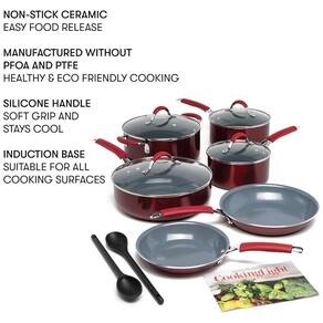 NONSTICK COOKWARE Revestimento cerâmico antiaderente para extrema proteção e durabilidade ALÇAS DE SILICONE A alça de silicone macia permanece fria ao toque, proporcionando um apoio confortável e confiante ALTO DESEMPENHO As panelas são feitas de uma base de indução de aço inoxidável, tornando as adequadas para todas as superfícies de cozimento QUALIDADE SUPERIOR O revestimento antiaderente é livre de PFOA e PTFE para cozinhar mais saudável e ecologicamente correto e possui tampas de vidro temperado com ventilação de vapor