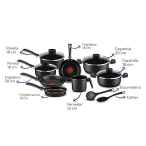 Composto por peças que ajudam na hora do preparo de suas receitas, que traz vivacidade e modernidade para sua cozinha, o Conjunto de Panelas Antiaderente Rochedo Pratic 10 Peças é super completo possuindo os principais itens que você precisa: duas panelas (16 e 20cm), duas caçarolas (18 e 20cm), duas frigideiras (18 e 20cm), uma frigideira ovo (16cm), um fervedor (12cm) e dois utensílios essenciais de alta qualidade para todo cozinheiro, uma escumadeira e uma colher.Confira todos os diferenciais deste jogo de panelas que fará toda a diferença na hora de cozinhar seus pratos preferidos:- Antiaderente Interno e Externo: Não gruda nada por dentro nem por fora, o revestimento antiaderente interno é até 2 vezes mais durável, para preparar receitas por muito mais tempo com a mesma performance do primeiro uso. Além disso, o revestimento externo também é antiaderente, facilitando a limpeza e possuem base semi-usinada que não permite que escorregue no fogão.- Thermo-Sinal®: tecnologia patenteada que muda de cor quando aquecida indicando a hora certa de colocar o alimento na frigideira para selar seu alimento, deixando mais macio e saboroso.- Controle do preparo: Tampa de vidro com saída de vapor.Além de contar com a qualidade da marca Rochedo, produzindo no Brasil há mais de 100 anos, o Conjunto de Panelas Rochedo Pratic possui cor resistente e antiaderente, que além de moderna, não mancha na chama do fogão. As panelas e frigideiras são livres de substâncias tóxicas (PFOA) e os cabos e alças são antitérmicos, garantindo a segurança de uso dos produtos. Podem ser utilizadas em fogão a gás, vitrocerâmico e elétrico.
