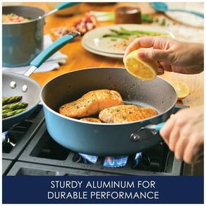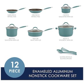 DESIGN DURÁVEL Panelas e frigideiras antiaderentes da Rachael Ray são criadas com alumínio durável e exteriores de porcelana de esmalte duro resistente para resistir a cozinhas ocupadas ANTIADERENTE SEM PFOA MELHORADO O conjunto de panelas apresenta antiaderente sem PFOA de cor espresso para liberação de alimentos sem esforço e fácil limpeza CONVENIÊNCIA E CONTROLE O conjunto de panelas antiaderente de 12 peças possui alças de aço inoxidável emborrachado com rebites duplos e tampas de vidro resistentes a quebra inclui virador com fenda e colher