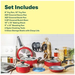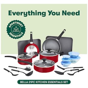 Apimente sua cozinha com o conjunto de cozimento e zenamento de 21 peças BELLA. Este elegante conjunto de panelas de 21 peças inclui todos os elementos básicos que você precisa para cozinhar todos os dias com um toque adicional. Desfrute de uma cozinha sem cuidados com revestimento antiaderente para fácil liberação de alimentos e limpeza sem esforço. Quando a comida estiver pronta, mova e transporte com segurança seus utensílios de cozinha com as alças resistentes de toque macio. As panelas são compatíveis com fogões a gás, elétricos, de vidro ou de cerâmica, este conjunto versátil elevará o estilo em qualquer cozinha. Equipar totalmente qualquer cozinha de uma só vez com os nossos favoritos BELLA
