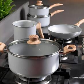 Conjunto De Panelas Ceramic Life Easy Brinox 5 Peças Cor: Cinza Claro Conjunto De Panelas Ceramic Life Easy Brinox 5 Peças