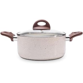 Um conjunto de panelas pode deixar sua cozinha muito mais charmosa. A linha Ceramic Life 2.5 Vanilla possui corpo em alumínio de 2.5mm de espessura que ajuda a dissipar o calor e cozinha mais rápido. O revestimento interno das panelas é cerâmico, muito mais saudável e ecológico. Contudo, o grande diferencial está na cor, misturando a delicadeza do bege texturizado das panelas com o marcante marrom dos cabos. As tampas são de vidro temperado com saída para o vapor e as alças são macias mas resistentes, com revestimento Soft-Touch.