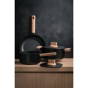 A Linha Concept Wood é toda em revestimento cerâmico, tom tampas em alumínio, cabos não esquentam e proporcionam toque macio, elas também podem ser usadas em fogões de indução e outros tipos de fogões.
