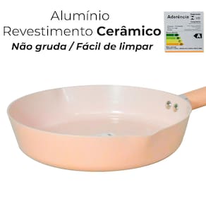 A composição conta com duas caçarolas, uma panela de cabo e uma frigideira, todas com interior em revestimento cerâmico bege altamente antiaderente, certificada com nota A em desempenho pelo Inmetro, conta com espessura de 2,5 mm que proporciona excelente distribuição de calor de forma uniforme proporcionando um cozimento uniforme de seu alimento.