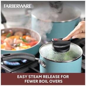 IN CONTROL COOKWARE As panelas e frigideiras Farberware Smart Control apresentam uma tampa de vidro temperado com uma inovadora saída de vapor incorporada ao botão para facilitar a liberação de vapor e menos fervura. ANTIaderente aprimorado panelas e frigideiras possuem a tecnologia antiaderente DiamondMax que é livre de produtos químicos sem PFOA, grafite ou cádmio e tem um desempenho 3X melhor do que os antiaderentes tradicionais. FEITO PARA DURAR A construção de alumínio durável apresenta uma base aparada para melhor condução e aquecimento mais rápido e uniforme de panelas e frigideiras. MANTENHA SUA FRESCURA As alças duplamente rebitadas e frias facilitam a movimentação de panelas e frigideiras do fogão para o forno. COZINHE COM CONVENIÊNCIA Panelas e frigideiras de cozinha são seguras para forno a 350 graus F e lava louças para limpeza rápida e fácil Marca: Não Informado