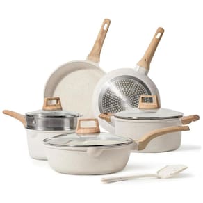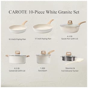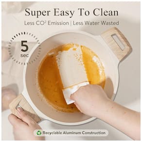 Granito Branco Ecológico Um material de granito antiaderente mais duro e de nível superior com desempenho 10x Ultra Antiaderente. O material é aprovado pela SGS com 100 livre de PFOS, PFOA. Nossas panelas garantem que sua cozinha diária seja sempre mais segura e saudável. Fácil de limpar design tudo em um. Interior sem rebites para evitar que os alimentos grudem. Basta limpá lo com uma toalha de papel ou enxaguá lo com água, o que torna o cozimento não apenas mais fácil, mas também mais agradável. Adequado para todos os fogões A base de aço inoxidável de alta condutividade magnética permite que nossos utensílios de cozinha de granito antiaderente funcionem em todos os cooktops, incluindo indução