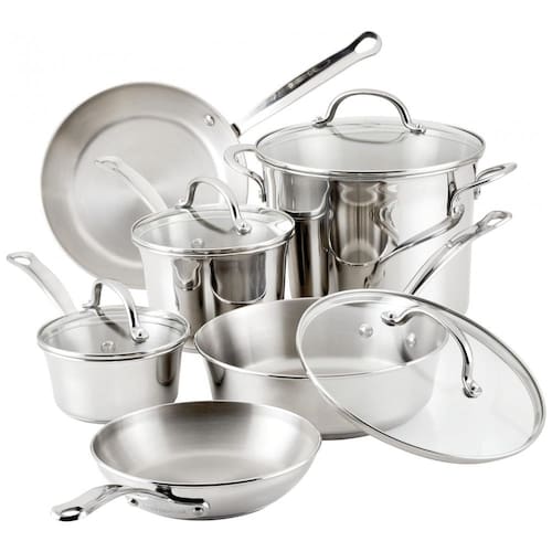 O conjunto de panelas de aço inoxidável inclui panelas de 1 e 2 litros com tampa, panela de 8 litros com tampa, frigideiras de 8 e 10 polegadas e uma frigideira de 3 litros com tampa. Panelas de indução de alto calor panelas e frigideiras de aço inoxidável são seguras para forno a 260 C e compatíveis com indução. Lavável na máquina de lavar louça o conjunto de panelas é lavável na máquina de lavar louça para uma limpeza conveniente. As tampas de vidro bloqueiam o calor e o sabor as tampas de vidro permitem monitorar o progresso do cozimento sem liberar calor ou sabor. Alças de aço inoxidável resistentes As alças de aço inoxidável são rebitadas com segurança em panelas e frigideiras para maior durabilidade