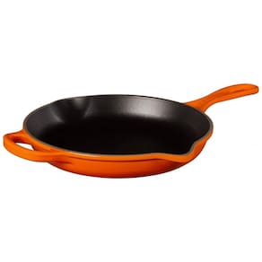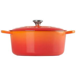 O ferro fundido esmaltado oferece distribuição e retenção de calor superiores. Pronto a usar, não requer tempero. O esmalte durável e fácil de limpar resiste ao embotamento, manchas, lascas e rachaduras. O esmalte interior liso de cor clara permite um fácil monitoramento do progresso do cozimento. Alças ergonômicas são projetadas para facilitar o levantamento