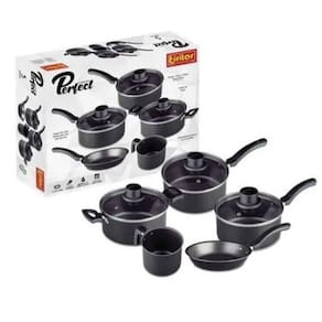 Conjunto De Panelas Eirilar Black 5 PeçasConjunto de panelas com revestimento antiaderente é para quem gosta de praticidade, os alimentos não grudam na panela proporcionando facilidade também na limpeza. Proporciona um cozimento rápido e uniforme e pode ser utilizada no fogão à gás ou elétrico. As panelas têm um revestimento interno antiaderente resistente à abrasão, que serve como uma aderência em qualquer superfície e propaga o calor com maior eficiência. Possui tampa de vidro temperado de alta resistência com saída de vapor e alças anatômicas facilitando o manuseio.Itens Inclusos:1 Panela Especial Antiaderente Com Tampa de Vidro 16 Cm.1 Panela Especial Antiaderente Com Tampa de Vidro 18 Cm.1 Caçarola Especial Antiaderente Com Tampa de Vidro 18 Cm.1 Canecão Especial 12 Cm.1 Frigideira Especial 18 Cm. Sem Tampa.Cor: Black