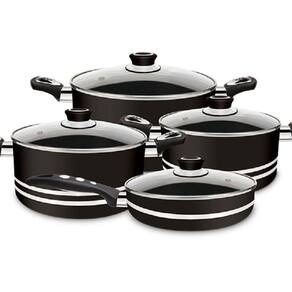 Conjunto de panelas de alumínio super reforçadas fabricadas pela Indústria de Alumínios Eirilar, tradicional Empresa do setor. As 4 peças que compõem o conjunto vem acondicionadas em caixa personalizada de acabamento luxuoso, tornando o conjunto ideal para presentear. As panelas, caçarolas e frigideiras do conjunto caracterizam-se pela extrema robustez, única no mercado, com 3 mm de espessura, o que as torna praticamente indestrutíveis, não deformando, não amassando e mantendo sua beleza por muitos e muitos anos. As panelas do conjunto são revestidas interna e externamente com três camadas de anti aderente da marca Dupont, evitando que os alimentos se agreguem às paredes das mesmas, facilitando sobremaneira a limpeza após o uso. Os cabos, alças e poméis (pegadores das tampas) são confeccionados em baquelite que resistem ao calor propagado pelas paredes das panelas ao serem levadas ao fogão. Entretanto é bom lembrar que não podem ser levados ao forno, que devido às altas temperaturas serão danificados. Os poméis (pegadores das tampas) contam com vaporizadores que podem ser acionados mediante giro dos mesmos, deixando escapar ou retendo o vapor interno. Especificações: 01 Caçarola 18Medidas: 9 cm altura x 18 cm diâmetroCapacidade: 2 litrosEspessura: 3 mm01 Caçarola 20Medidas: 10 cm altura x 20 cm diâmetroCapacidade: 2,7 LitrosEspessura: 3 mm01 Caçarola 22Medidas: 11 cm altura x 22 cm diâmetroCapacidade: 3,7 LitrosEspessura: 3 mm01 Frigideira 20Medidas: 5,5 cm altura x 20 cm diâmetroCapacidade: 1,4 litrosEspessura: 3 mm Garantia 6 Meses Contra Defeitos de Fabricação