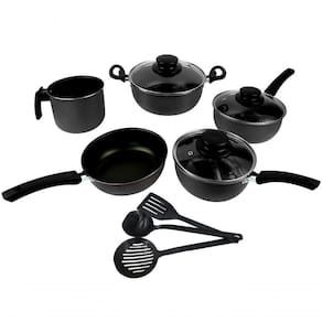 O Conjunto de 5 Panelas Elegan é uma ótima escolha para quem quer equipar sua cozinha com produtos modernos e de boa qualidade, as panelas foram desenvolvida com alças térmicas e todo o conjunto é antiaderente para não deixar que os alimentos grudem no fundo das panelas, deixando tudo mais saboroso, além de ficar muito mais fácil na hora de lavar. Ótima para o preparo dos alimentos e com um fogão de cinco bocas, tudo pode ser preparado em sincronia . Possui tampas de vidro para você olhar o cozimento de seus alimentos com mais praticidade e rapidez. Além de incluir 3 utensílios para sua cozinha