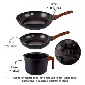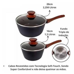 - pode ser utilizado em todos os tipos de fogões existentes no mercado: a gás, elétricas, vitrocerâmicas e de indução. - revestimento cerâmico em 3 camadas, com espessura: 4mm / corpo: 2,3mm / fundo: 2,7mm. - cabo em baquelite com revestimento soft touch, que é super macio ao toque, confortável de segurar e evita queimaduras. - revestimento cerâmico não gruda nos alimentos, permitindo que você use menos óleo. - livre de pfoa, possui classificação a excelente no inmetro. - fundo triplo indução, economiza energia e cozinha mais rápido, estrutura de alumínio revestida em cerâmica. - possui 3 camadas, sendo 2 camadas de revestimento cerâmico e 1 camada resistente a alta temperatura. Antes do primeiro uso cura do produto :