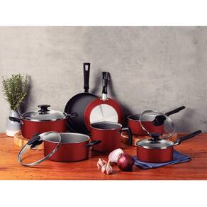 Conjunto de Panelas Loreto Tramontina Alumínio Antiaderente Starflon Max Tampa de Vidro Vermelho Jogo 7 Peças