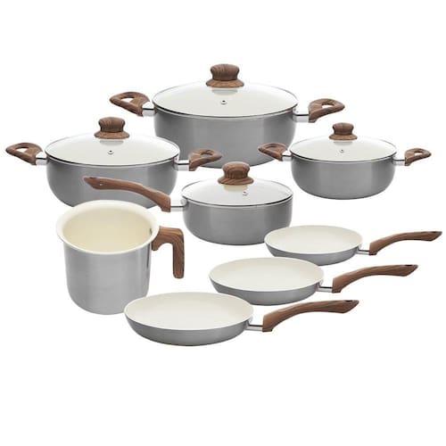 Para deixar os pratos ainda mais saborosos a hora de cozinhar, grelhar e fritar é bem importante no resultado final do que vai ser servido à mesa. Para que isso seja prático, fácil e funcional, a Casambiente apresenta o jogo de panelas New York com 8 peças na cor prata. Seu grande diferencial está na espessura de 2.0 mm, que confere uma estrutura muito durável ao item e no revestimento cerâmico de alta qualidade que confere a durabilidade, excelente antiaderência e beleza às panelas, cabos em baquelite revestido de silicone com aparência de madeira.