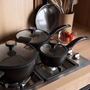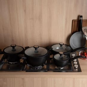 Cozinhar bem vai muito além de ingredientes de qualidade e a escolha das panelas certas faz toda a diferença! As panelas de cerâmica da Kenya são perfeitas para quem busca praticidade, saúde e sofisticação na tecnologia avançada, essas panelas garantem uniforme de calor, cozinhando os alimentos por igual e economizando energia. Além disso, são compatíveis com fogões de indução, gás, elétrico e vitrocerâmico. Com design moderno e sofisticado, as panelas Kenya agregam elegância à sua cozinha. Seu material resistente garante maior durabilidade e desempenho impecável no dia a dia.Especificações do produto:-Diferente de muitas panelas de cerâmica comuns, essa linha foi projetada para funcionar perfeitamente em fogões de indução-Revestimento Cerâmico Antiaderente Evita que os alimentos grudem, facilita a limpeza e permite cozinhar com menos óleo, tornando as refeições mais saudáveis-O acabamento na cor preta (Noir) dá um toque moderno e sofisticado à cozinhaFicha técnica:- Código: 4089540031- Marca: Kenya- Conteúdo da Embalagem: 5 Peças- Material: Cerâmica- Cor: Preto- Peso: 5kg- Dimensões: 38cm x 36,5cm x 56, (AxLxP)- Garantia: 3 Meses