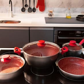 O Conjunto de Panelas Philco Redstone PKT407, composto por 4 peças, se destaca pelo revestimento cerâmico de alto poder antiaderente Redstone. Essa característica permite preparar alimentos sem grudar, tornando a limpeza mais fácil. Além disso, as panelas são versáteis e compatíveis com todos os tipos de fogões, como elétricos, a gás, radiante, indução e vitrocerâmicos. O cabo de baquelite, revestido com material emborrachado, proporciona segurança ao cozinhar, evitando queimaduras nas mãos. A espessura do fundo, de 4,5mm, contribui para uma distribuição mais eficiente e rápida do calor, mantendo a temperatura por mais tempo. Com espessura de 3,5mm, as panelas garantem durabilidade excepcional ao produto. Experimente a qualidade e praticidade do Conjunto de Panelas Philco Redstone PKT407 em sua cozinha.