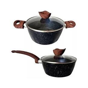 Conjunto de Panelas Preta Antiaderente Tampa de Vidro 4 pçs