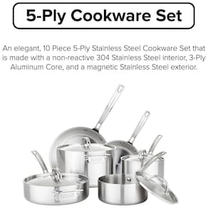 Conjunto inclui frigideiras de e , panelas de molho de 2 L e 3 L com tampas, panela de estoque de 8 L com tampa e panela refogada de 3,4 litros com tampa. Este conjunto de panelas e frigideiras de cozinha apresenta um exterior de aço inoxidável. Com um elegante acabamento acetinado e cinco camadas de metal, esta linha premium de panelas de cozinha é especialmente feita à mão nos EUA. Estas panelas e frigideiras de indução são exatamente o que falta na sua cozinha. 5 Ply Professional é otimizado para todos os cooktops, incluindo indução. Alças ergonômicas em aço fundido para conforto, equilíbrio e controle. Fogão, forno, grelha, grill e lava louças. As panelas de aço inoxidável Viking estão disponíveis em 3 ou 5 camadas e apresentam panelas e frigideiras de indução perfeitas para cada conjunto de cozinha. Estas panelas para cozinhar são um ótimo complemento para suas panelas e frigideiras. De panelas de alta qualidade fabricadas nos EUA a peças de ferro fundido ou panelas antiaderentes, a Viking tem algo para você. Explore aço inoxidável, alumínio antiaderente, cobre, titânio, ferro fundido, aço carbono e muito mais