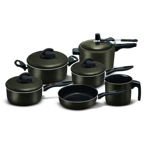 A linha de panelas da Marpal possui revestimento interno e externo com antiaderente , o que evita os alimentos grudarem, proporcionando facilidade na limpeza. Outra vantagem: maior espessura do revestimento dos produtos para proporcionar melhor cozimento dos alimentos e mais economia, pois o calor se espalha de forma uniforme e rápida.Além disso, as panelas têm cabos e alças em baquelite antitérmico que resistem a altas temperaturas durante o manuseio .- Podem ser utilizadas em fogão a gás, elétrico.- Podem ir à máquina de lavar louças. - Seguindo as instruções de uso, permanecerão bonitas por muito mais tempo.Para garantir a durabilidade do revestimento dos produtos, recomenda-se usar utensílios de nylon, silicone ou madeira. Secá-la bem após a lavagem, mesmo sendo em máquina de lavar louças.ficha técnicaCódigo 789672Código de barras 7896773530560Marca Aluminio MarpalDescrição e número de peças Frigideira 20 cm, Panela 16cm, Panela 18cm, Caneco14cm, Caçarola 20cm, Panela De Pressao 4,5 LitrosComposição/Material Aluminio com Antiaderente Cor/Acabamento Grafite/AntiaderenteUtilidade CozinharCaracterísticas da tampa Tampas de Aluminio AntiaderenteVálvula de segurança NãoRecomendações de uso Para garantir a durabilidade do revestimento dos produtos, recomenda-se usar utensílios de nylon, silicone ou madeira. Secá-la bem após a lavagem, mesmo sendo em máquina de lavar louçasPode ser levado a ao micro-ondas NãoPode ser lavado a na máquina de lava-louças SimConteúdo da embalagem 1 Frigideiras, 1 Caçarola, 2 Panelas, 1 Caneco, 1 Panela De PressaoDimensões aproximadas da embalagem do produto - cm AxLxP 48x40x40cmPeso liq. aproximado do produto - Kg 3,5kgPeso aproximado da embalagem com produto - Kg 3,9kgGarantia do fornecedor Panela Pressão 2 anosModelo Super 06Referência do modelo Super 06 PeçasFornecedor Marpal