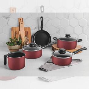 Conjunto de Panelas Tramontina Caribe 5 peças Antiaderente Starflon Max Vermelho.