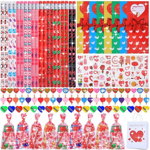 - 💓 Criatividade infinita: este conjunto de papelaria reúne 28 lápis, 28 borrachas em forma de coração, 28 adoráveis apontadores de lápis, 28 adesivos requintados, 28 clipes em forma de coração com design exclusivo, 28 cartões especialmente criados, 28 sacos de doces, 1 saco de papel em forma de coração e 1 linda caixa. Cada elemento é engenhosamente projetado, criando um mundo cheio de criatividade para crianças.