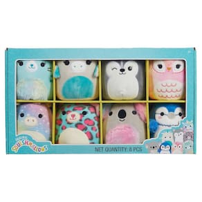 Pronto, definido... Empurrar! Os Squishmallows são tão fofinhos quanto fofos! Este conjunto divertido inclui oito (8) adoráveis personagens Squishmallow! Cada mini pelúcia Squishmallow mede 12,7 cm de altura. Feito de elastano super macio e enchimento de poliéster para uma diversão louca e fofa. Os Squishmallows certamente estarão na "lista de apertar de todos"! É um ótimo presente!