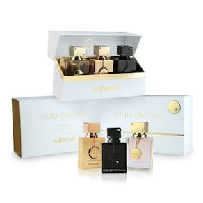 Casa de design: Armaf. Nome do perfume: Club De Nuit Mini Set. Gênero: Senhoras. Categoria: Fragrância. Subtipo: Conjunto de presentes. Código de barras: 6294015148343. 3 unidades EDP 30ML - 1,0 FL Oz/30 ml Club De Nuit Intense Woman, 1,0 FL Oz/30 ml Club De Nuit Woman, 1,0 FL Oz/30 ml Club De Nuit Milestone. Esses aromas fazem parte da prestigiosa coleção Club De Nuit. Conjunto de presentes em spray Armaf Ladies Club De Nuit, fragrâncias 6294015148343.