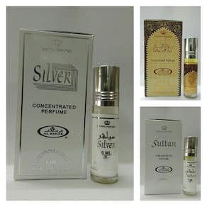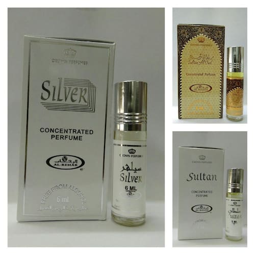 Ambrosial - Conjunto Fragrances of Heaven Al Rehab de 3 x 6 ml de prata - Sultan Al Oud - Óleo de perfume árabe concentrado Sultan Unissex Oriental Attar